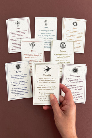 Une petite carte du symbole lui correspondant accompagne chaque création.