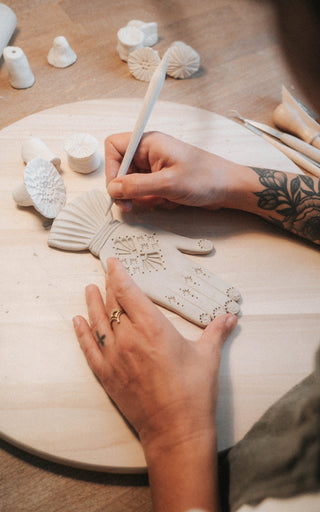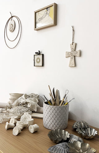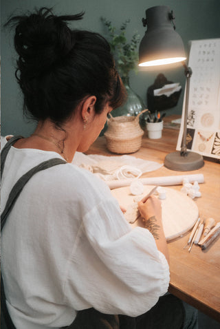Il y a quelques années j'ai découvert la céramique et commencé à créer mes premières collections de bijoux de mur. Une véritable passion à laquelle j'ai décider de me consacrer pleinement aujourd'hui !